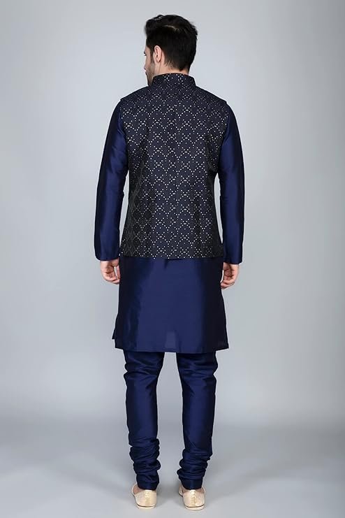 Festive Finesse: The Complete Men’s Navy Kurta and Nehru Jacket Ensemble