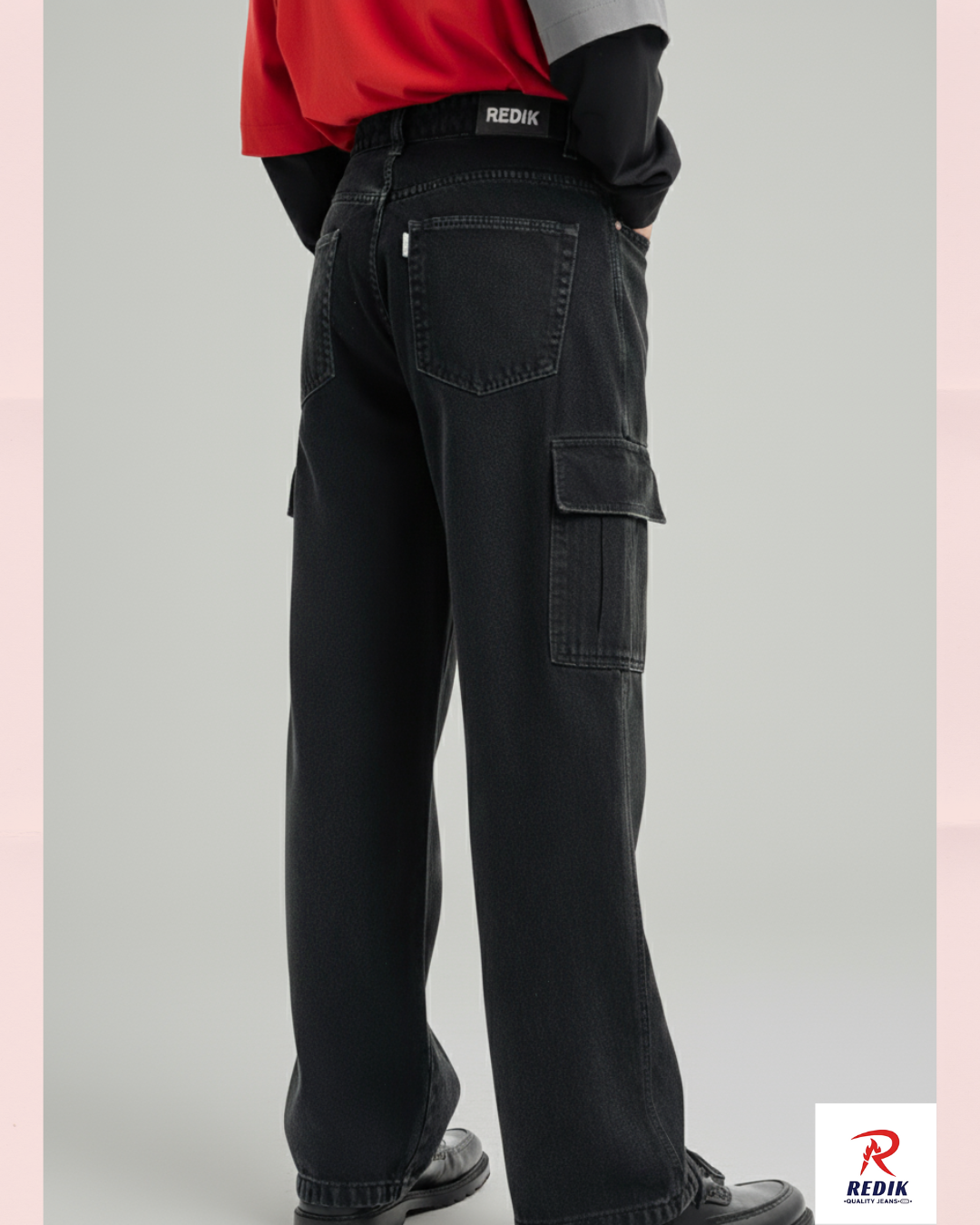 Unleash Your Urban Edge with the RED!K Black Washed Denim Cargo Jeans!