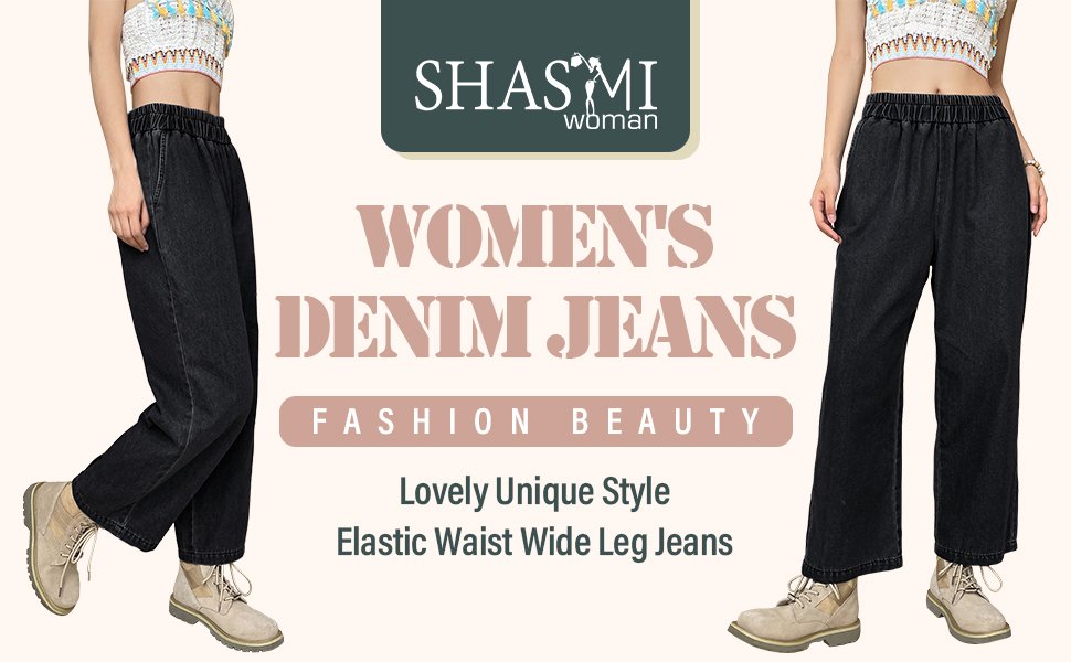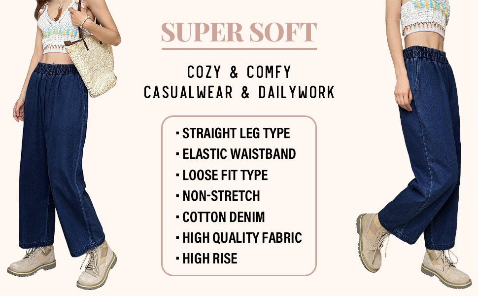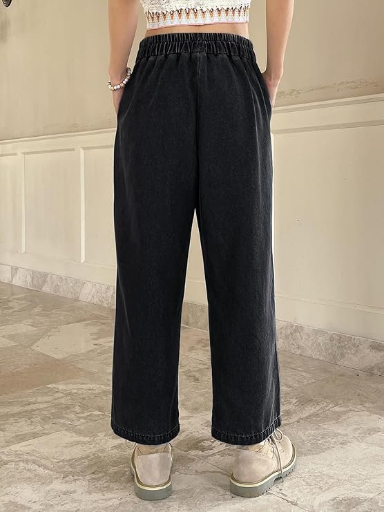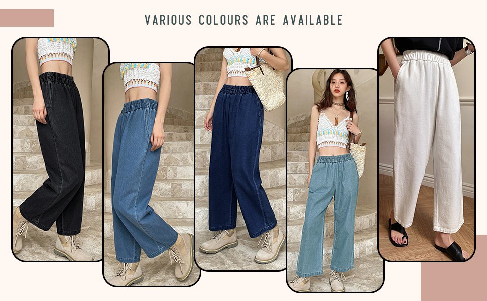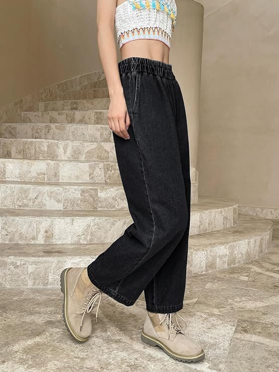 - Generic Name : Women’s High-Waist Wide Leg Denim Pants, Elastic Waist, Ankle Length, Cotton, Casual